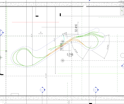 Of course, I also found a way to work Revit into the mix. I used that to design and plan the benchwork to support my wonderful track-plan. A little hi-jinx with images got the track plan into Revit at scale so that I could make sure things were lining up "close enough". I could also make sure it would fit properly in the basement thanks to having a Revit model of the house!