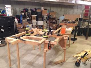 Progress in the last week has resulted in the first half of benchwork being stood up! Thanks to Revit I had a detailed cutting plan to work from, and my estimate of material (from a schedule) was spot on for linear feet. If only the carpenter were as good as the computer, one mistake in my manual optimization of cutting led to having to use some scrap pine I had for one last piece... :-(